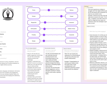 This personality roadmap outlines the design and development of Mira, a digital wellness assistant chatbot. Mira's persona is empathetic, supportive, and non-judgmental, with a tone that adapts to the user's journey. Starting with gentle guidance, Mira gradually evolves into an enthusiastic and celebratory companion as users achieve their wellness goals.